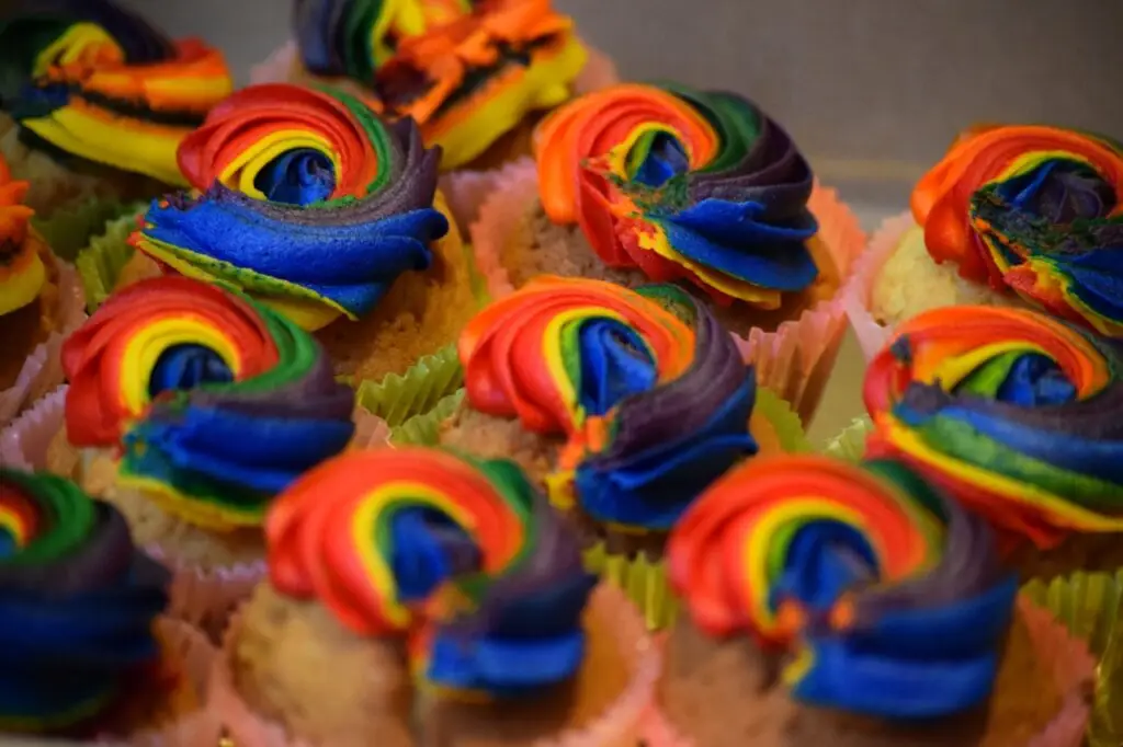 Cupcakes del orgullo (frosting multicolor) sin gluten.